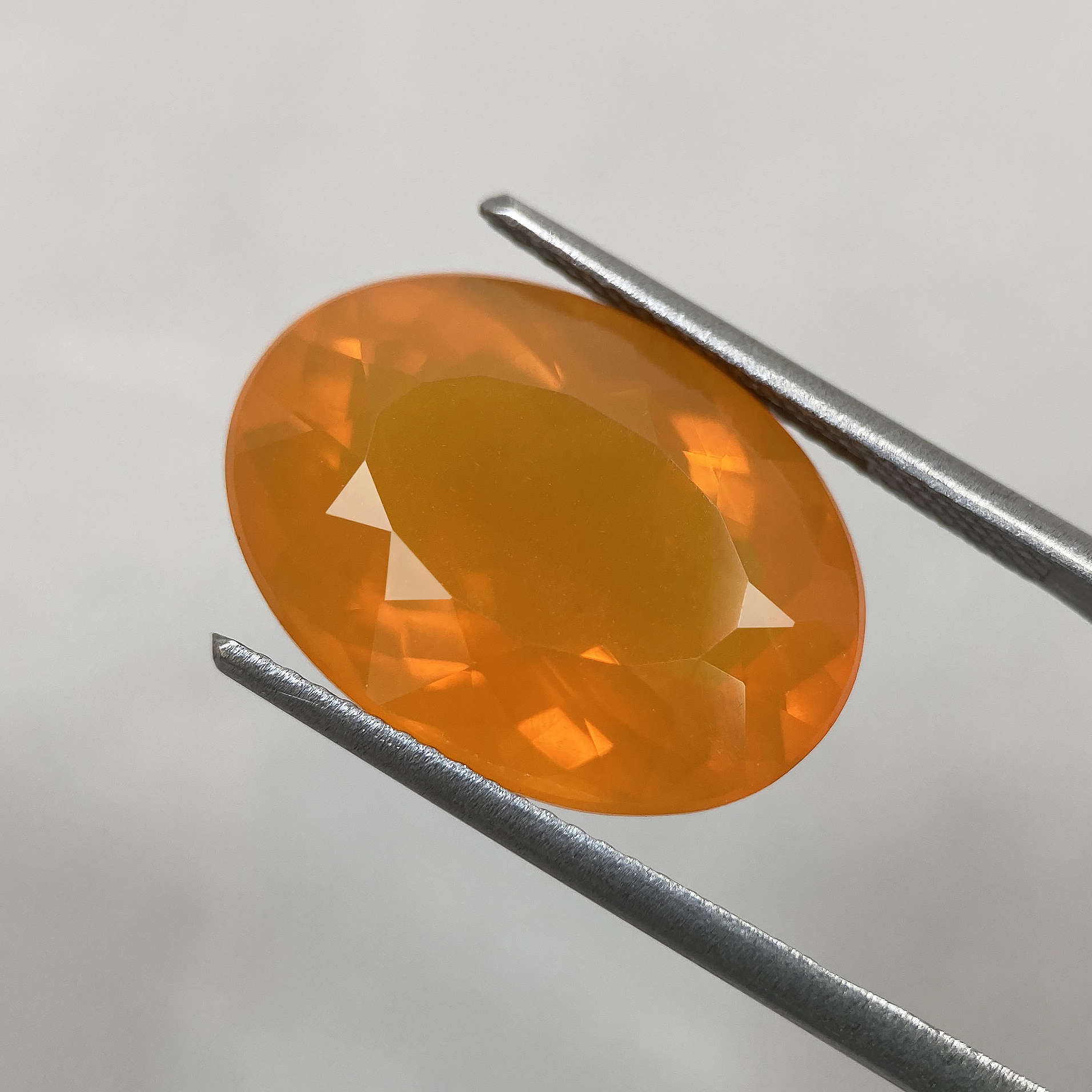 This 9.89 carat Fire Opal is a precious gemstone found exclusively in Mexico, renowned for its exceptional color display that changes based on the observer’s perspective and the angle of light. The stone is composed of a hydrated form of silica, and it is characterized by vivid and striking fire colors and patterns that can range from yellow and orange. If you’re looking to create jewelry using this stone, we can assist you with that.