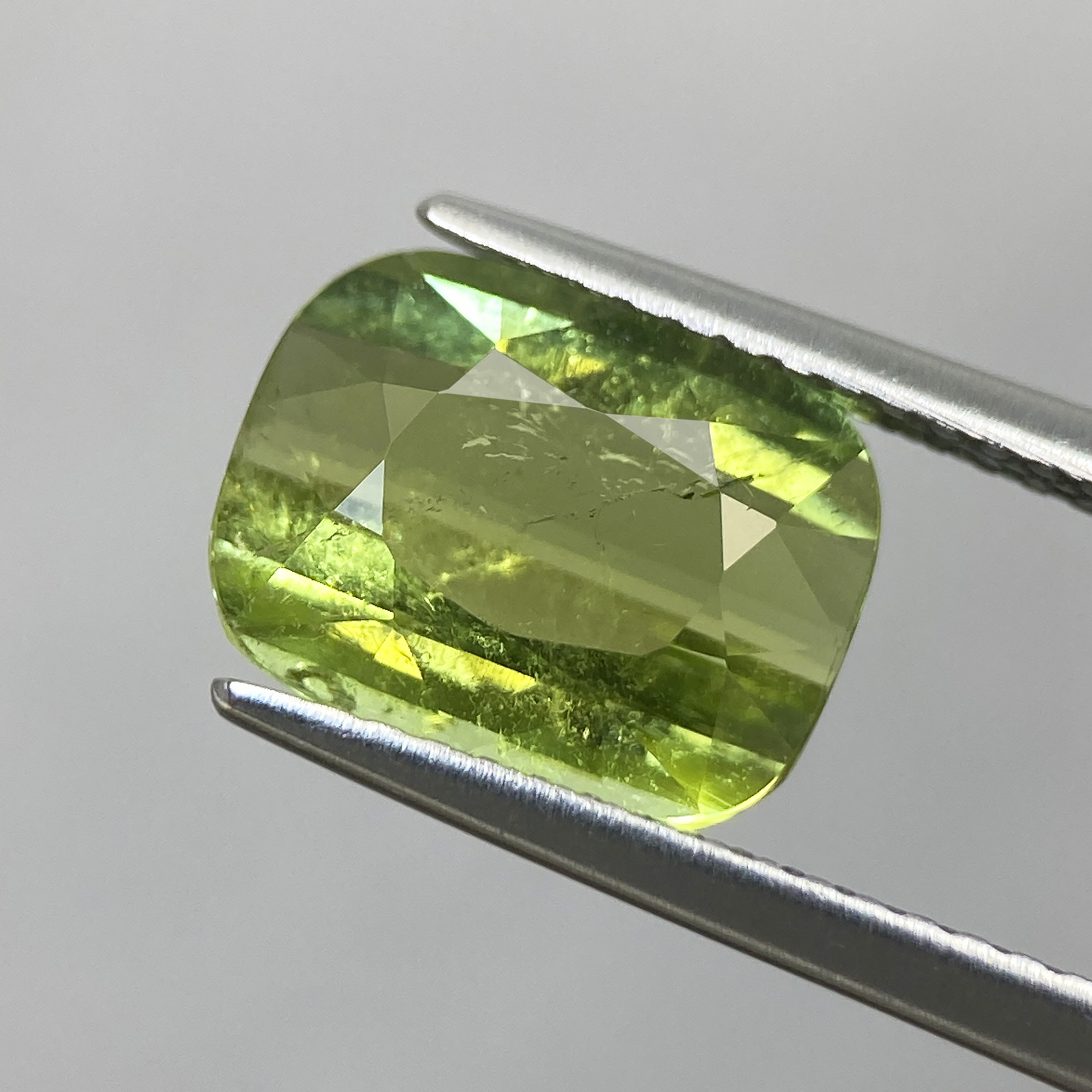 Discover the Beauty of this 3.21ct Natural Green Tourmaline, expertly faceted into a Cushion shape sized at 10.5 X 8.1 MM from Mozambique – a stunning addition to any collection or jewelry piece. If you have a vision of creating a unique jewelry piece with this or any exquisite stone, we invite you to get in touch with us.